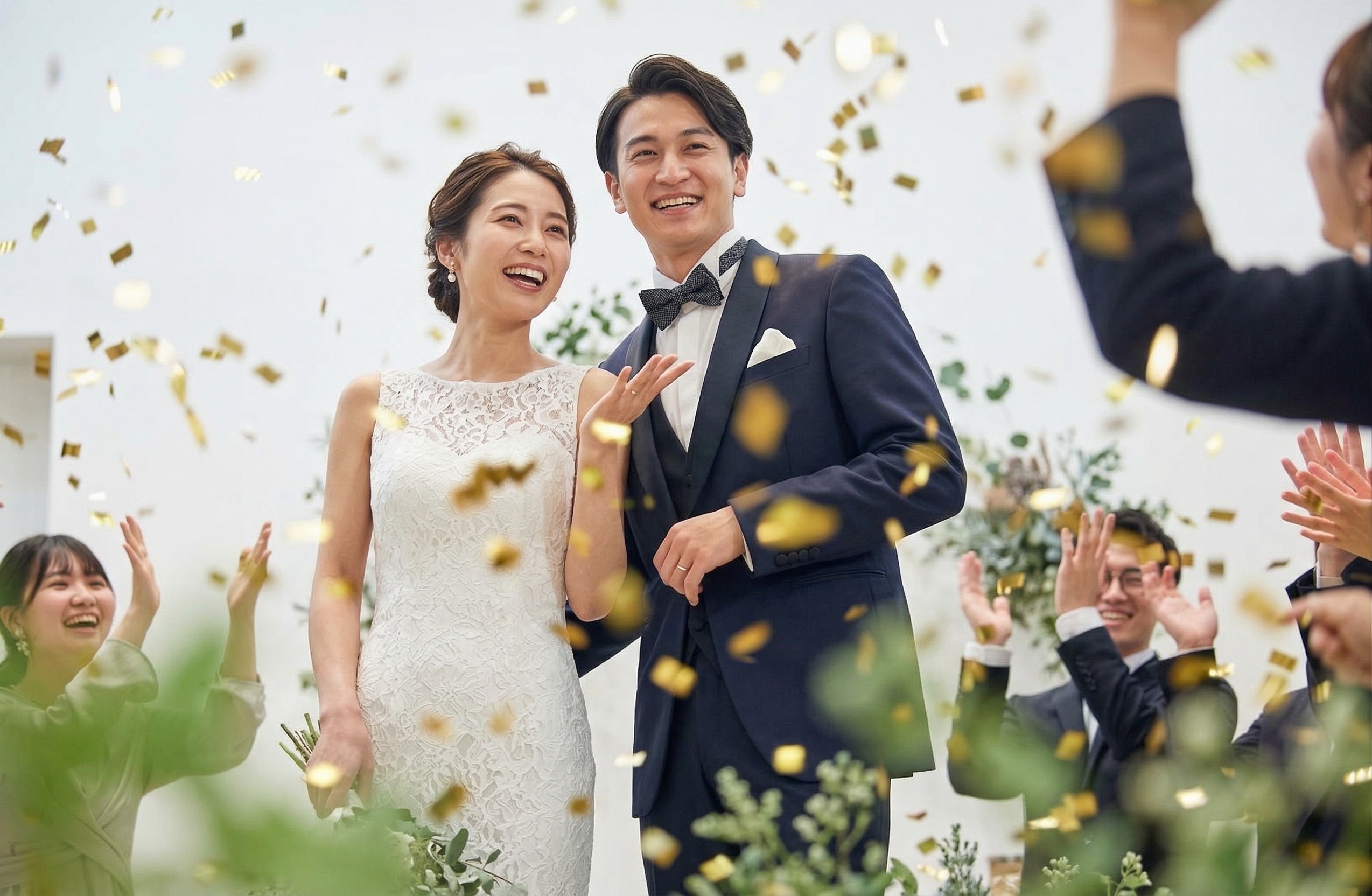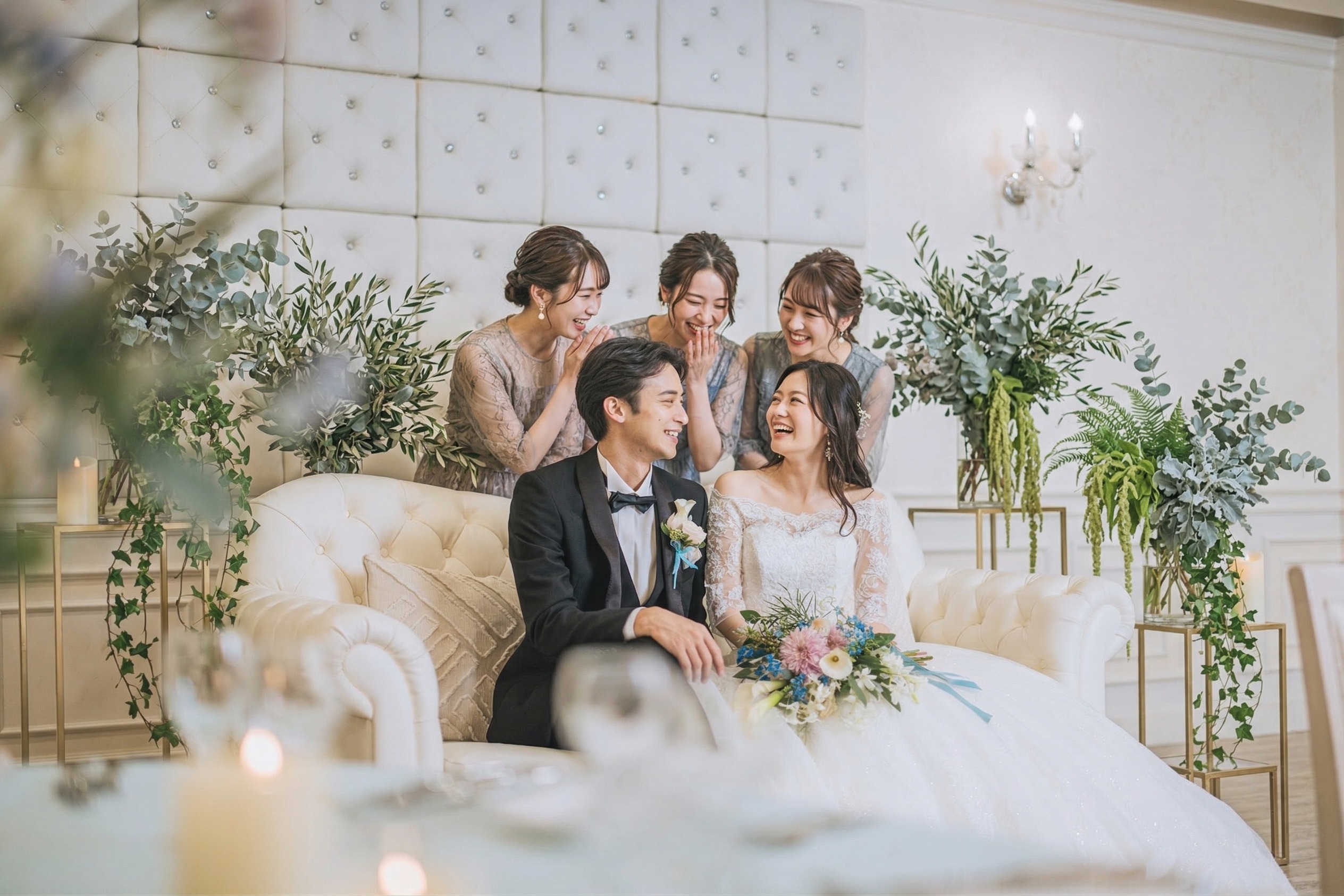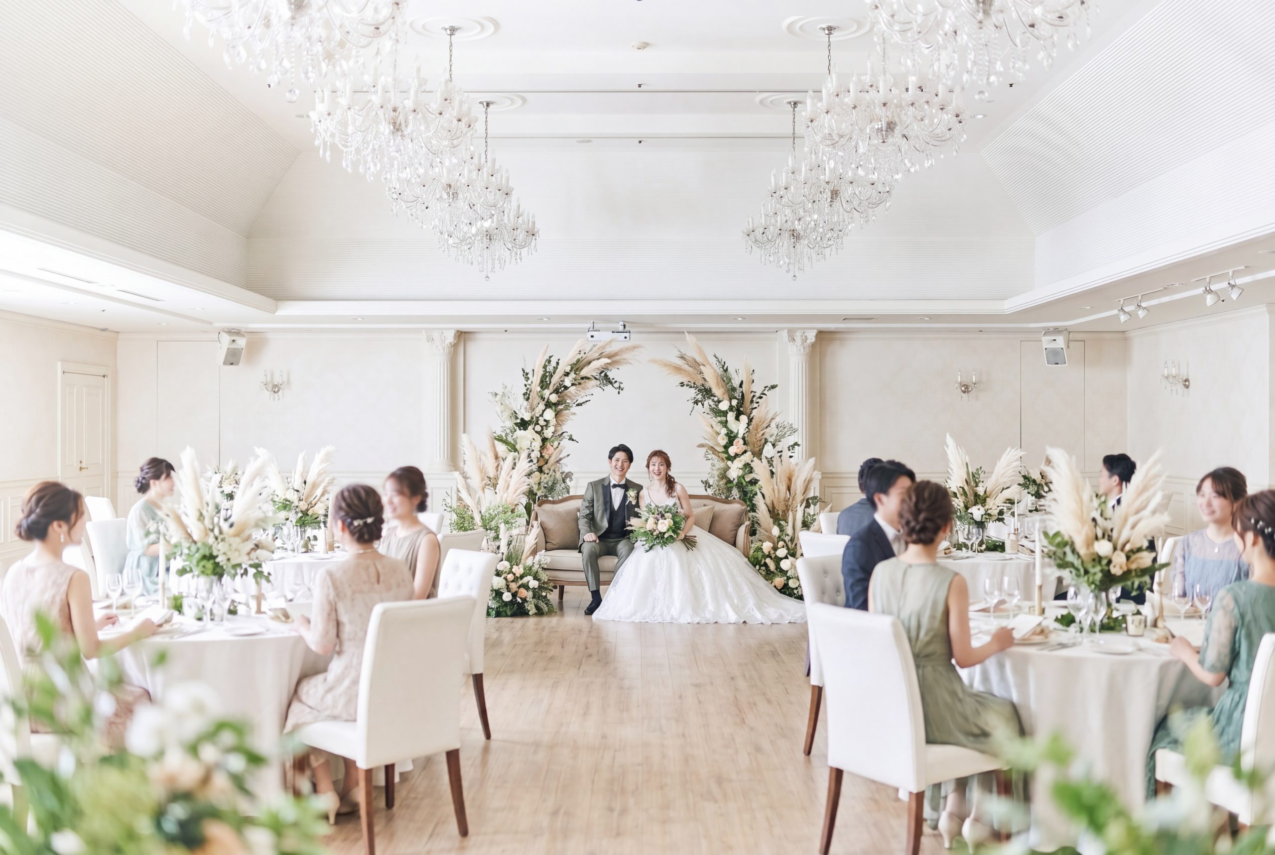 白を基調とした上品なデザインだから、どんなカラーでも似合うのが嬉しい&ゲストとの距離を大切にしたパーティールーム。